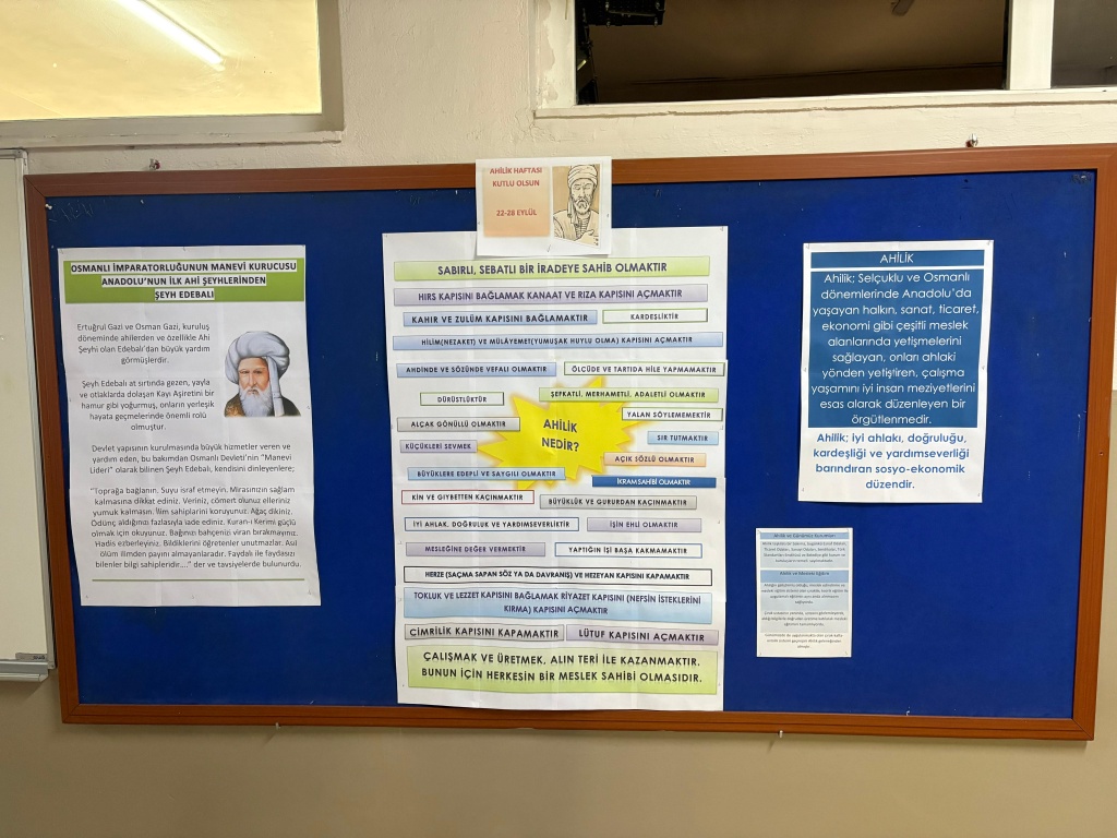 Okulumuz Muhasebe ve Finansman Alanı öğretmen ve öğrencilerinin hazırlamış olduğu Ahilik Haftası kutlama programı renkli görüntülere sahne oldu.Meslek lisesinde eğitim alan gençlerimize Ahilik kültürünü tanıtmak, günümüzdeki esnaflık ve ticaret hayatı ile bütünleştirmelerini sağlamak amacıyla, "Pabucunu dama atmak" skeci sergilendi. Programda, Ahilik ilke ve nasihatlerini anlatan oratoryo sunumu yapıldı. 12 /A sınıfı öğrencileri Ahilik yemini ettiler. Okul müdürümüz Ahiliğin tarihsel süreci hakkında öğrencilere bilgilendirme konuşması yaptı. Okul panosu Ahilik Haftası görselleri ile hazırlandı. Ayrıca Şeyh Edebali türbesindeki Ahilik Haftası törenine katılım sağlandı. Emeği geçen öğretmen ve öğrencilerimize teşekkür ederiz.